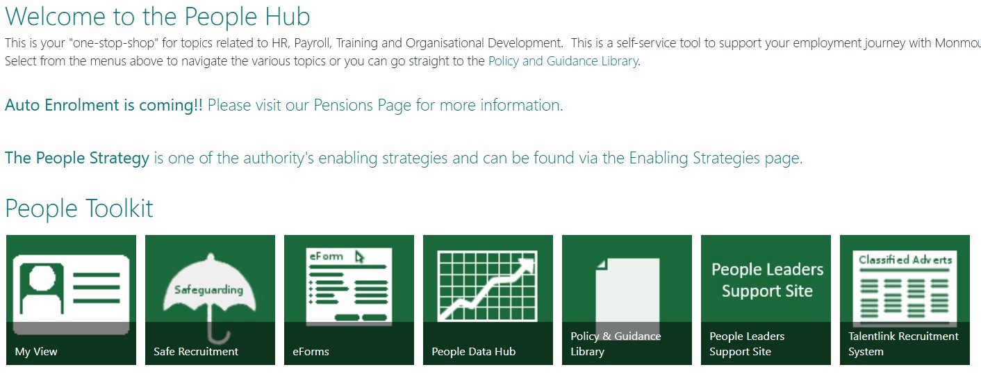 If you use the Employee Toolbox (pictured) which parts do you regularly access? Please tick all those you feel are most useful to you.